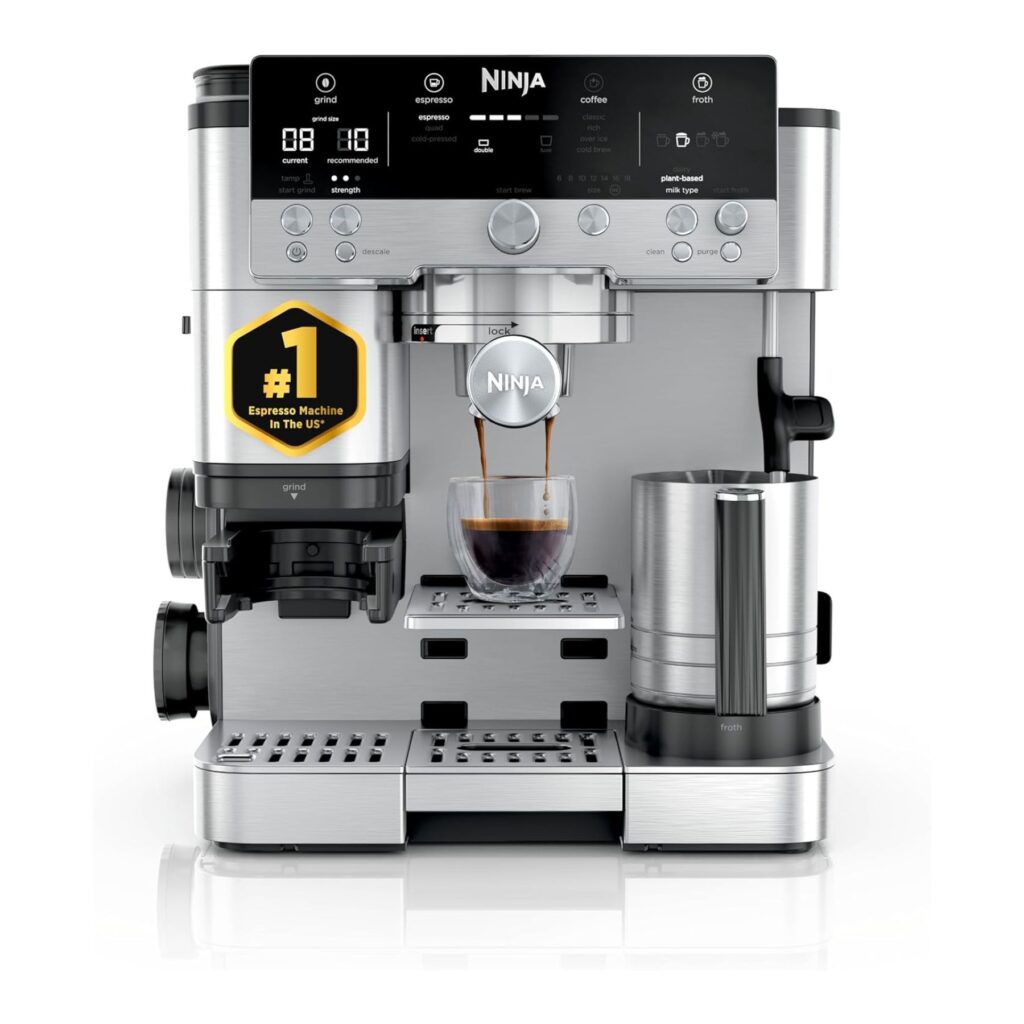 La NINJA Serie Luxe Café Premier ES601 combina espresso, café de goteo y bebidas frías en una sola máquina, con molinillo integrado de 25 ajustes, dosificación y temperatura guiadas por BARISTA Assist, y espumador manos libres para capuchinos y lattes perfectos. Ideal para quienes buscan café de calidad profesional y versatilidad sin complicaciones en casa.